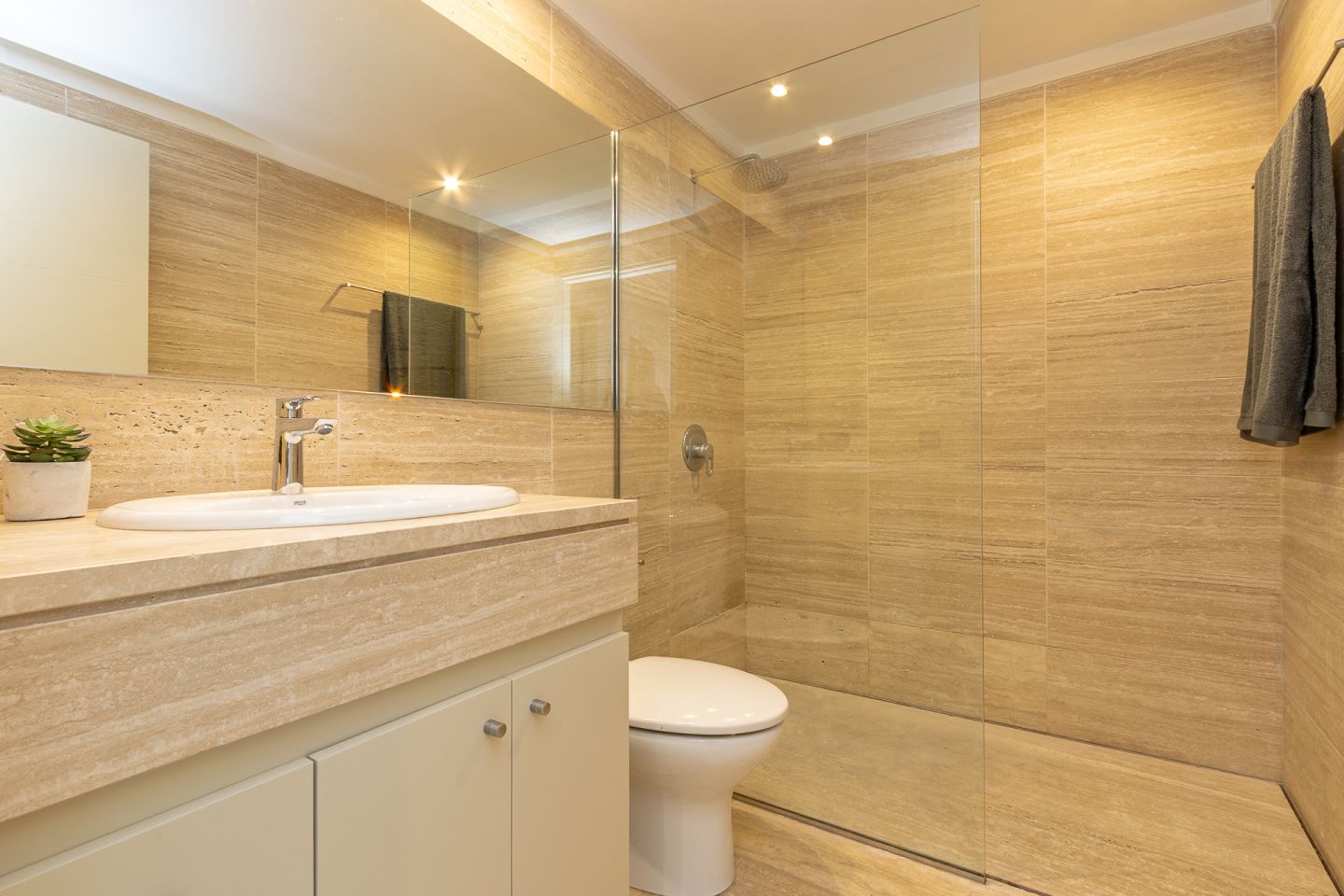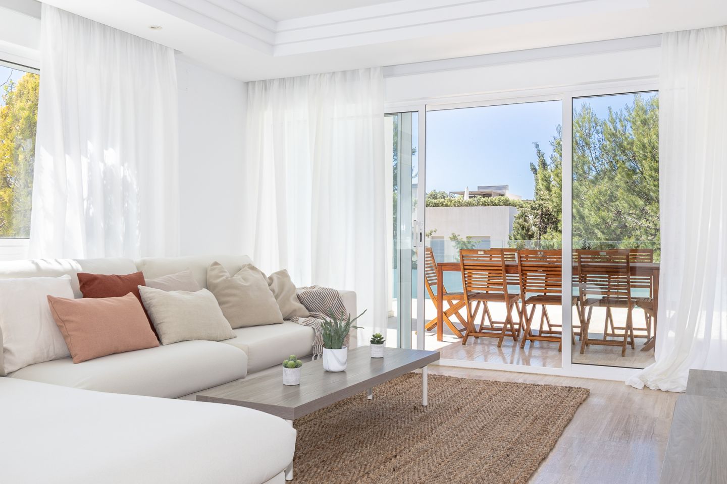 Impresionante Ático a solo 200 m de la Playa y del Paseo de los Pinos! Este excepcional ático se encuentra en la tranquila zona residencial de Bellresguard, a tan solo 200 metros de la playa y del conocido Paseo de los Pinos. La propiedad ofrece una superficie habitable de 186,02 m², una amplia terraza de 36,57 m² y una espectacular azotea privada de 166,44 m², equipada con barbacoa y jacuzzi, ideal para disfrutar de vistas despejadas a la montaña. El apartamento cuenta con cuatro dormitorios dobles y tres baños, y el luminoso salón-comedor se integra perfectamente con una cocina totalmente equipada y un lavadero independiente. Los acabados de alta calidad incluyen suelos y revestimientos de mármol travertino, persianas eléctricas, aire acondicionado y calefacción. Además, la comunidad ofrece extensas zonas ajardinadas, y aparcamiento cubierto. Se vende completamente amueblado y equipado, listo para entrar a vivir y disfrutar.