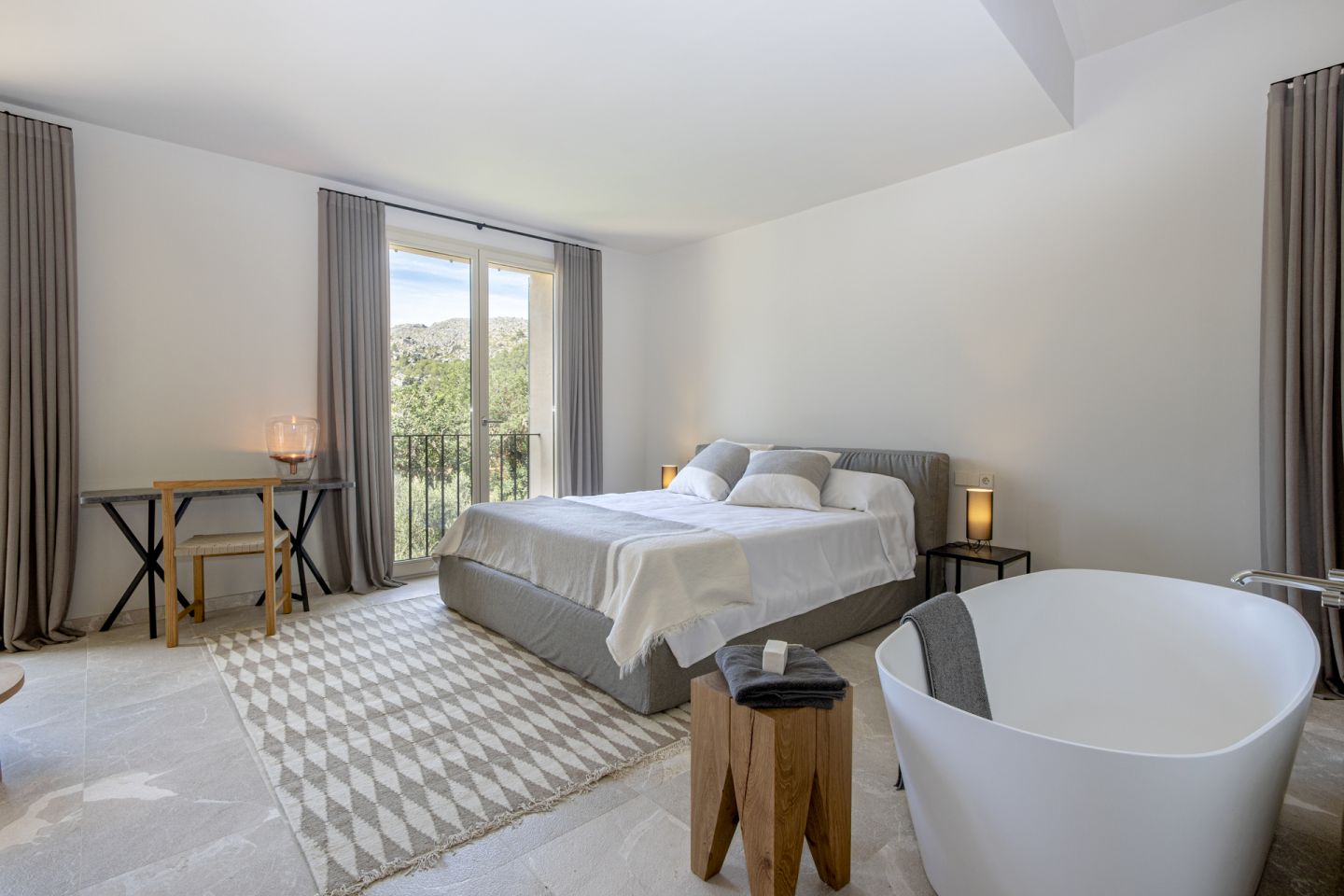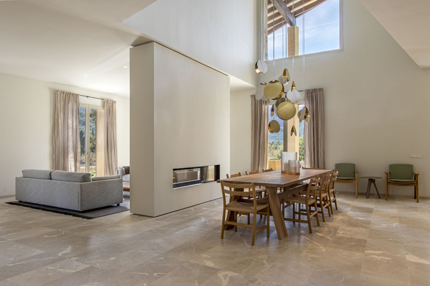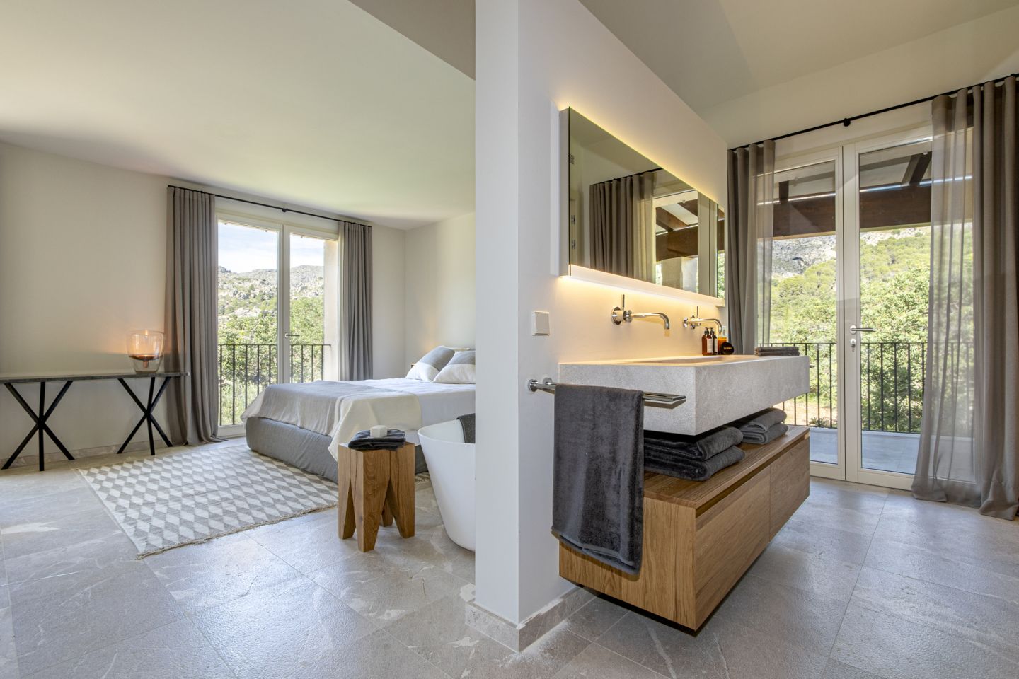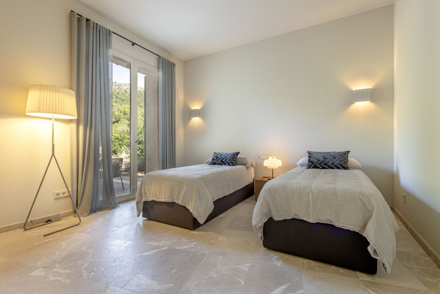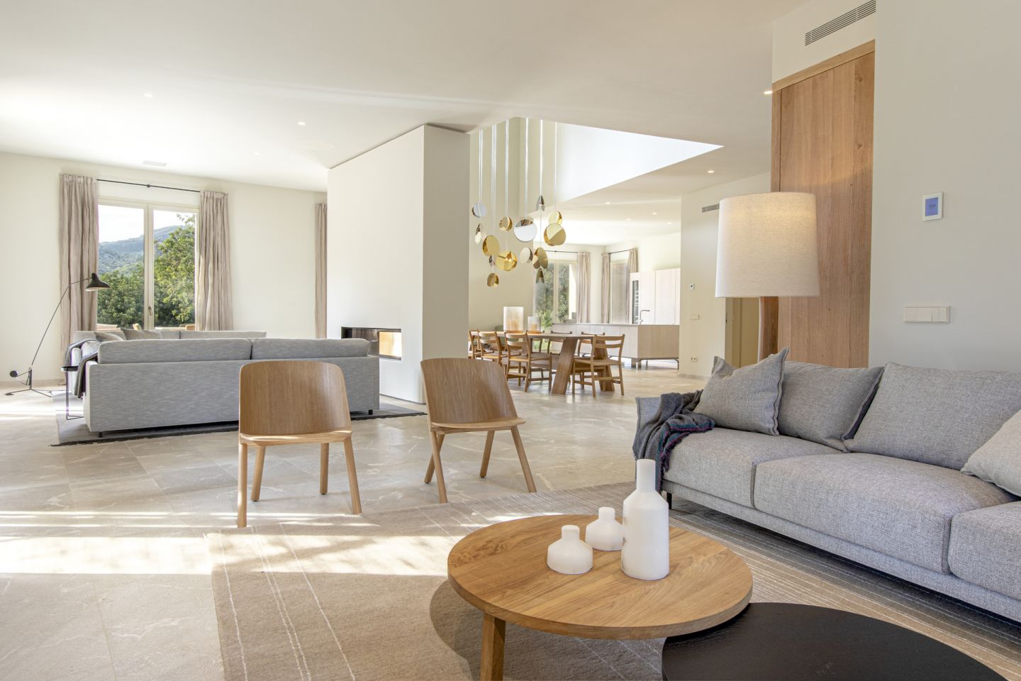 Located in the exclusive Vall de n March, this south facing property has great privacy and amazing views to Puig Tomir. The villa has been constructed to the highest quality standards, with high ceilings, using the best materials and latest technology but adapting the architecture to the environment, and is equipped with furniture from renowned European designers. The ground floor level offers an impressive entrance which leads to a large living-area with fireplace and various sitting areas, dining area, open plan kitchen, cloakroom, utility room and a large bedroom with en suite bathroom and its own terrace. In the first floor: main bedroom with bathroom, walk-in cupboard and two terraces. Another three bedrooms, one of them with its own bathroom and terrace. Outdoors: covered terrace dining area connected to the kitchen, outdoor living-area covered by a beautiful pergola, swimming-pool and a fabulous garden surrounding the house. Features: Underfloor heating and airconditioning with internet access, solar panels, mechanical ventilation system, water well with treatment plant.