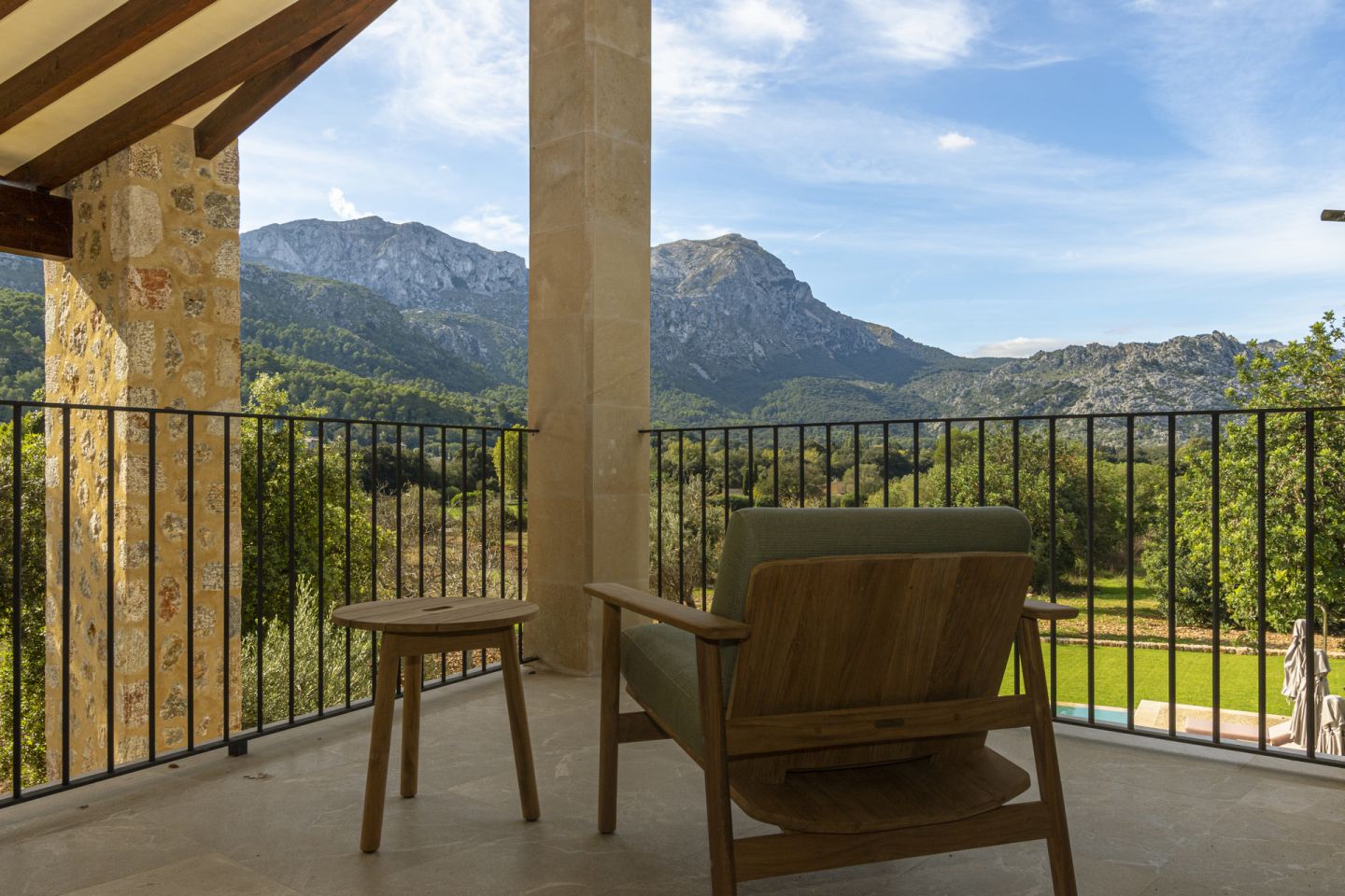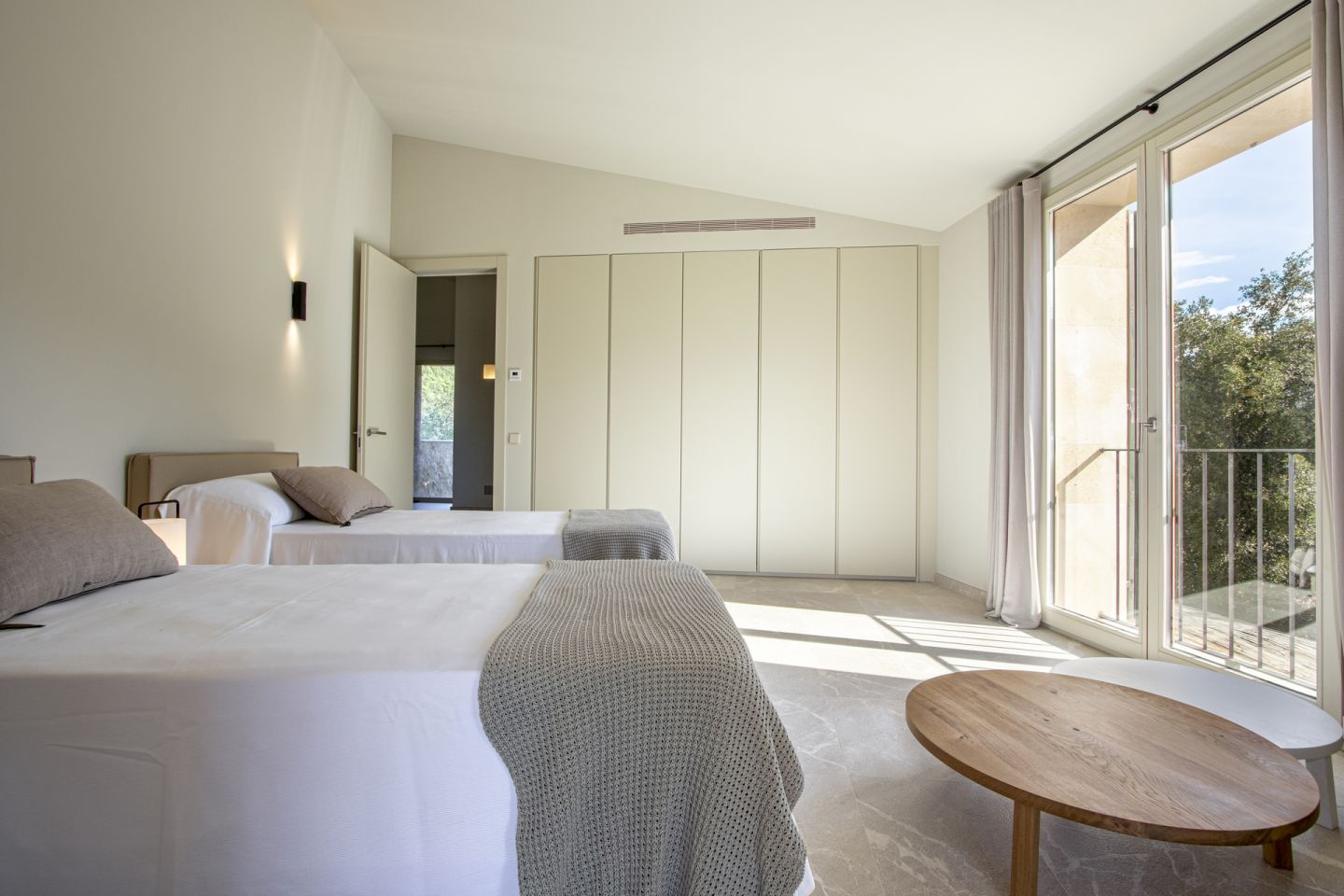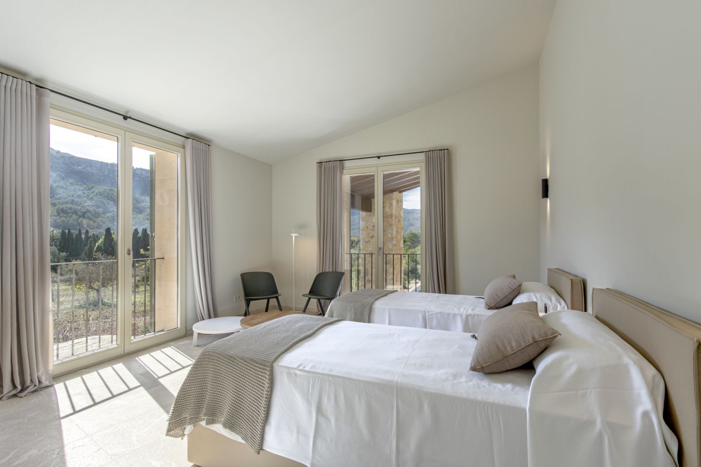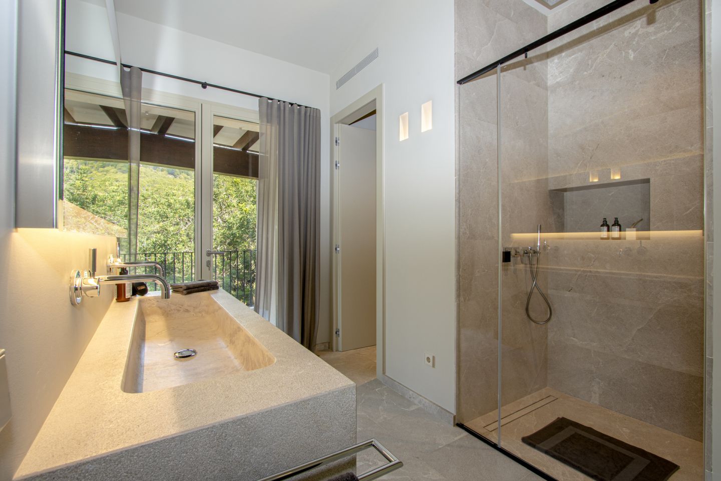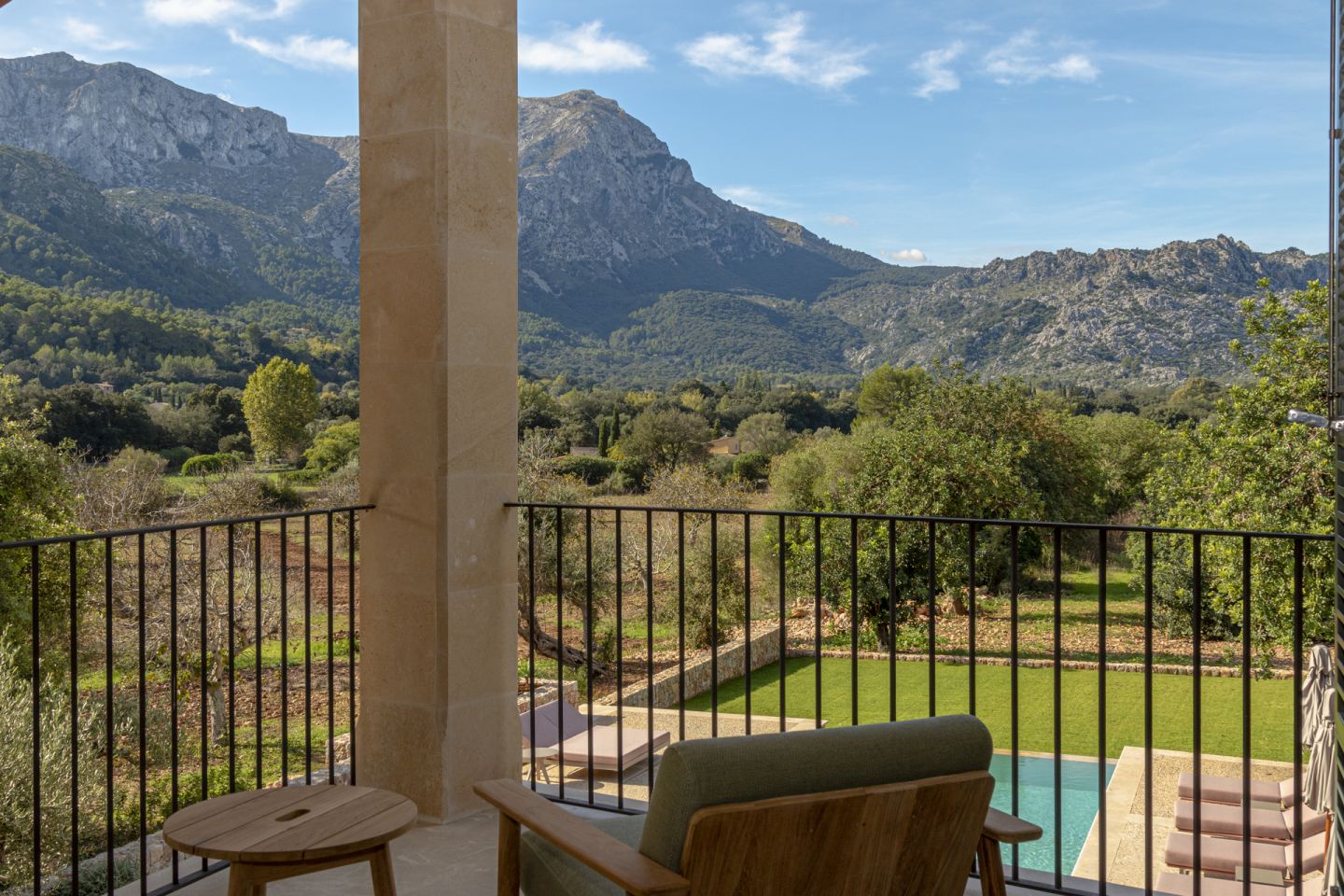 Located in the exclusive Vall de n March, this south facing property has great privacy and amazing views to Puig Tomir. The villa has been constructed to the highest quality standards, with high ceilings, using the best materials and latest technology but adapting the architecture to the environment, and is equipped with furniture from renowned European designers. The ground floor level offers an impressive entrance which leads to a large living-area with fireplace and various sitting areas, dining area, open plan kitchen, cloakroom, utility room and a large bedroom with en suite bathroom and its own terrace. In the first floor: main bedroom with bathroom, walk-in cupboard and two terraces. Another three bedrooms, one of them with its own bathroom and terrace. Outdoors: covered terrace dining area connected to the kitchen, outdoor living-area covered by a beautiful pergola, swimming-pool and a fabulous garden surrounding the house. Features: Underfloor heating and airconditioning with internet access, solar panels, mechanical ventilation system, water well with treatment plant.