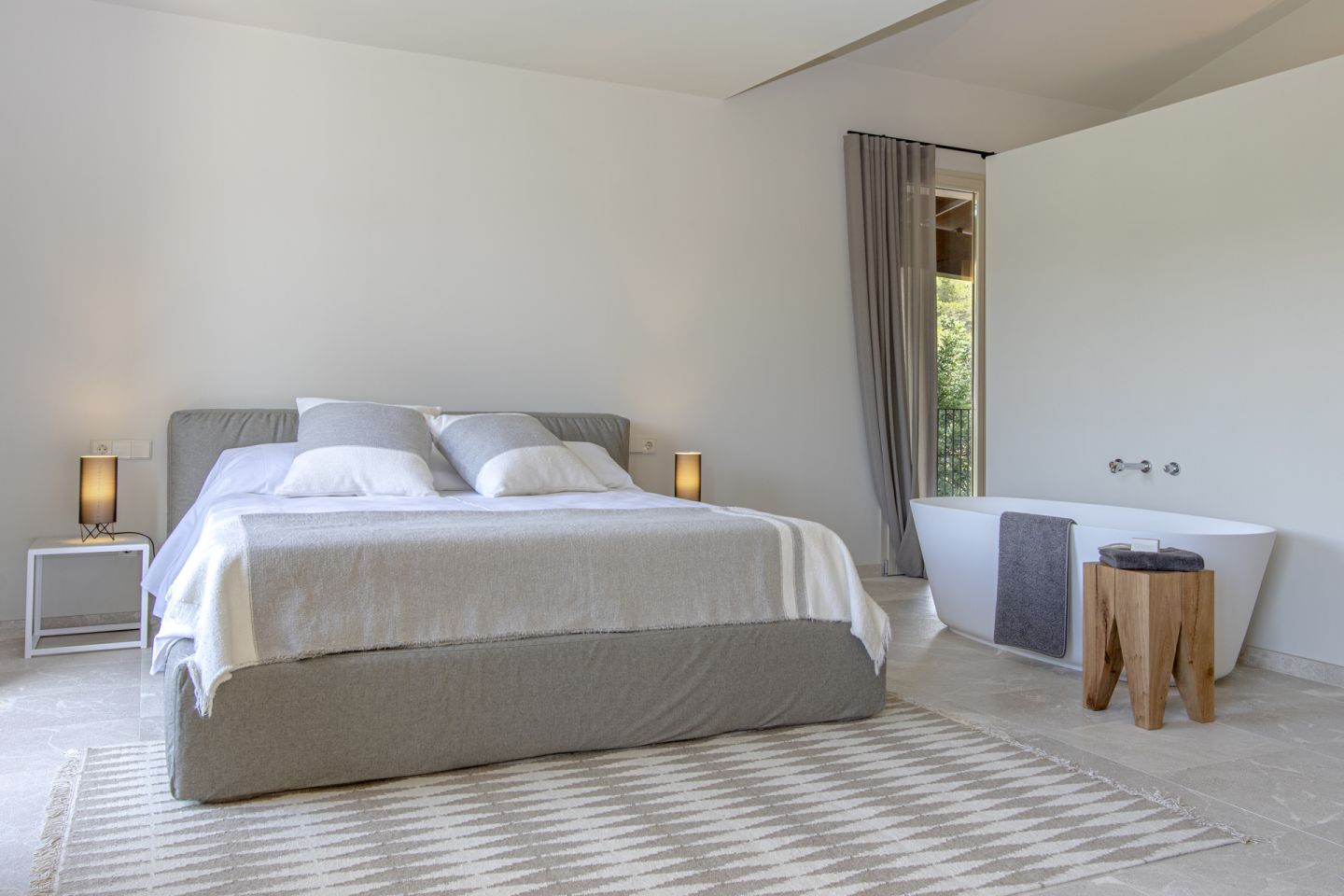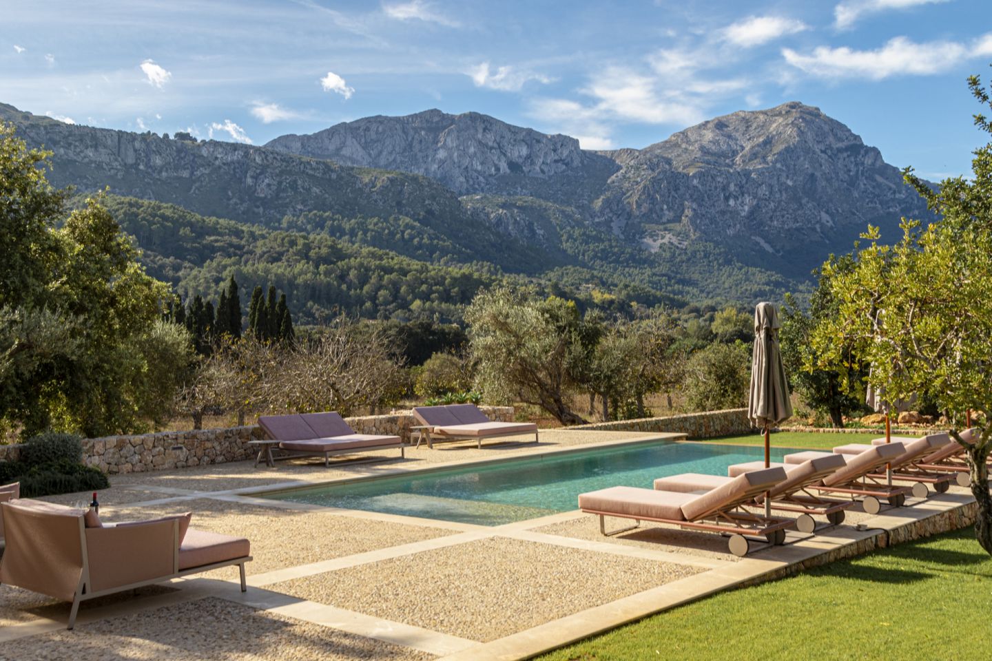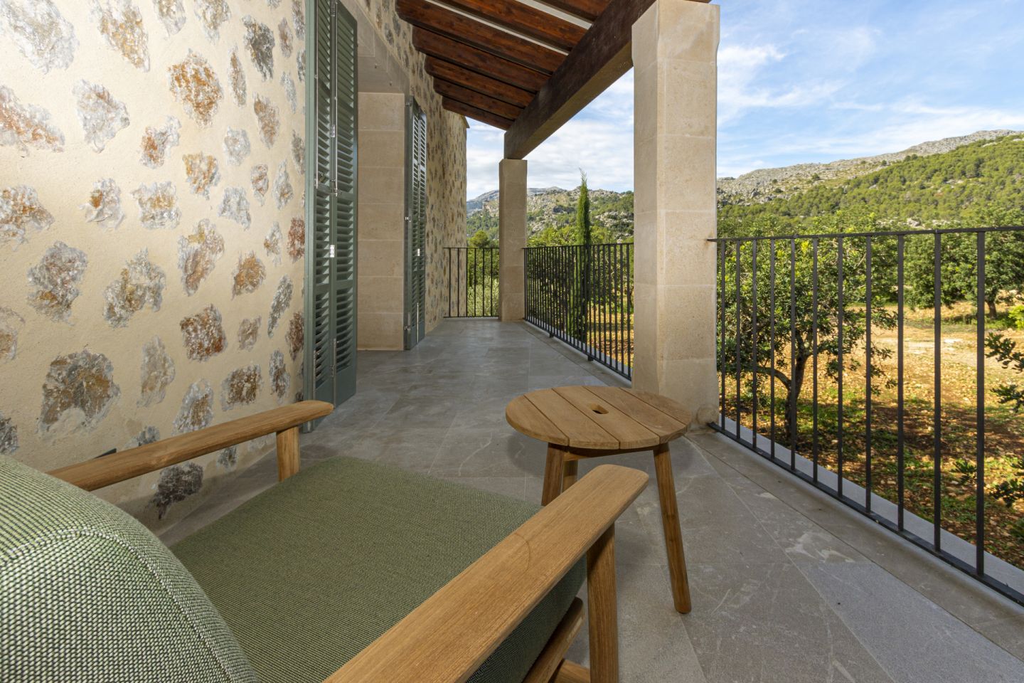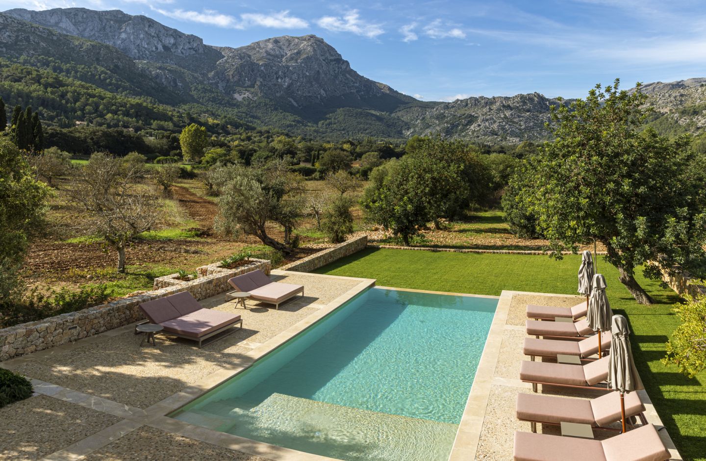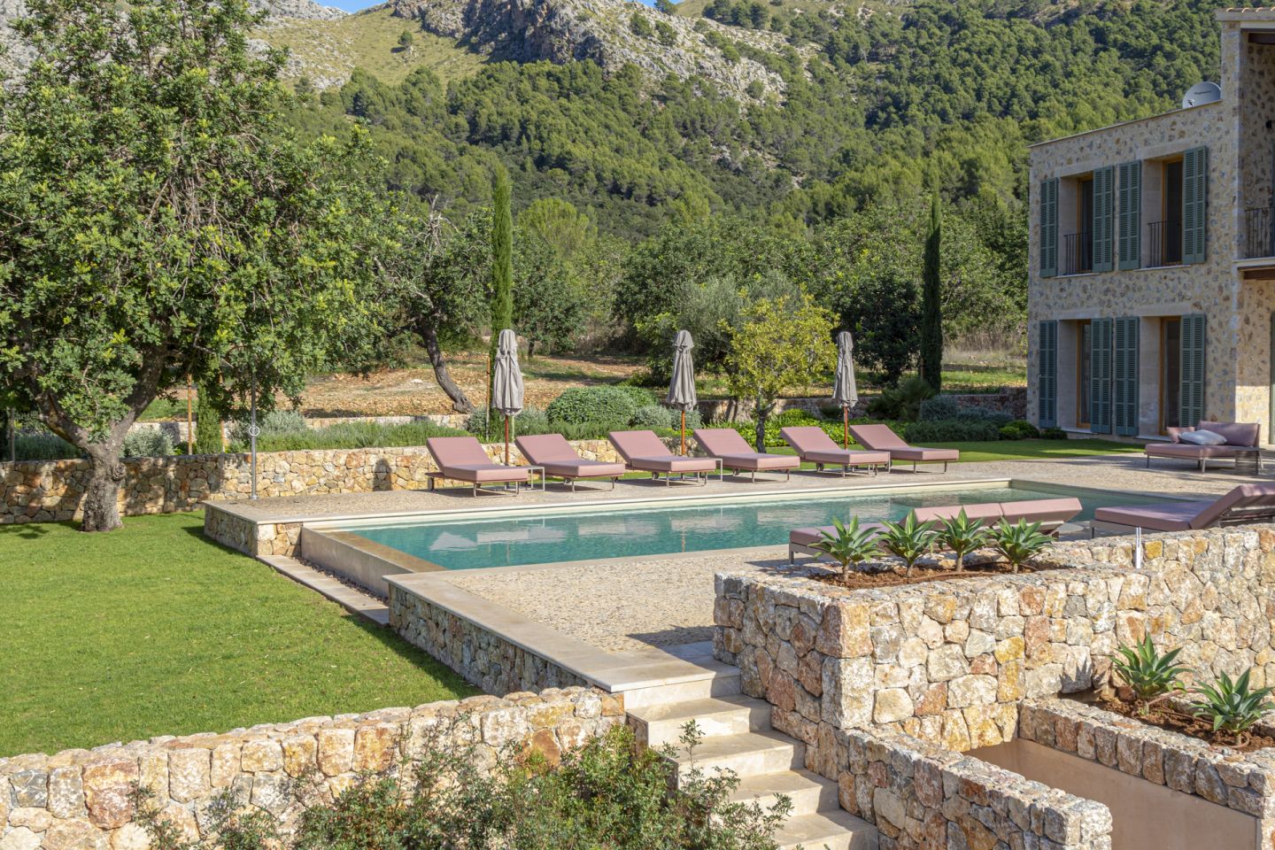 Located in the exclusive Vall de n March, this south facing property has great privacy and amazing views to Puig Tomir. The villa has been constructed to the highest quality standards, with high ceilings, using the best materials and latest technology but adapting the architecture to the environment, and is equipped with furniture from renowned European designers. The ground floor level offers an impressive entrance which leads to a large living-area with fireplace and various sitting areas, dining area, open plan kitchen, cloakroom, utility room and a large bedroom with en suite bathroom and its own terrace. In the first floor: main bedroom with bathroom, walk-in cupboard and two terraces. Another three bedrooms, one of them with its own bathroom and terrace. Outdoors: covered terrace dining area connected to the kitchen, outdoor living-area covered by a beautiful pergola, swimming-pool and a fabulous garden surrounding the house. Features: Underfloor heating and airconditioning with internet access, solar panels, mechanical ventilation system, water well with treatment plant.