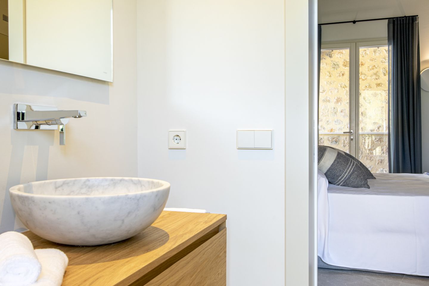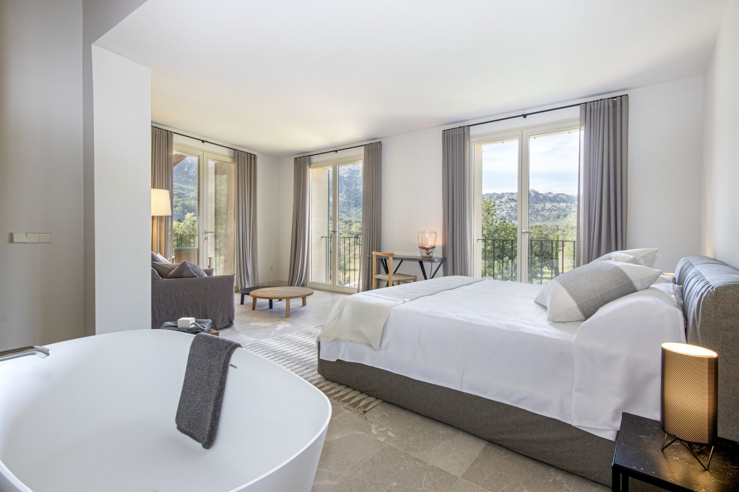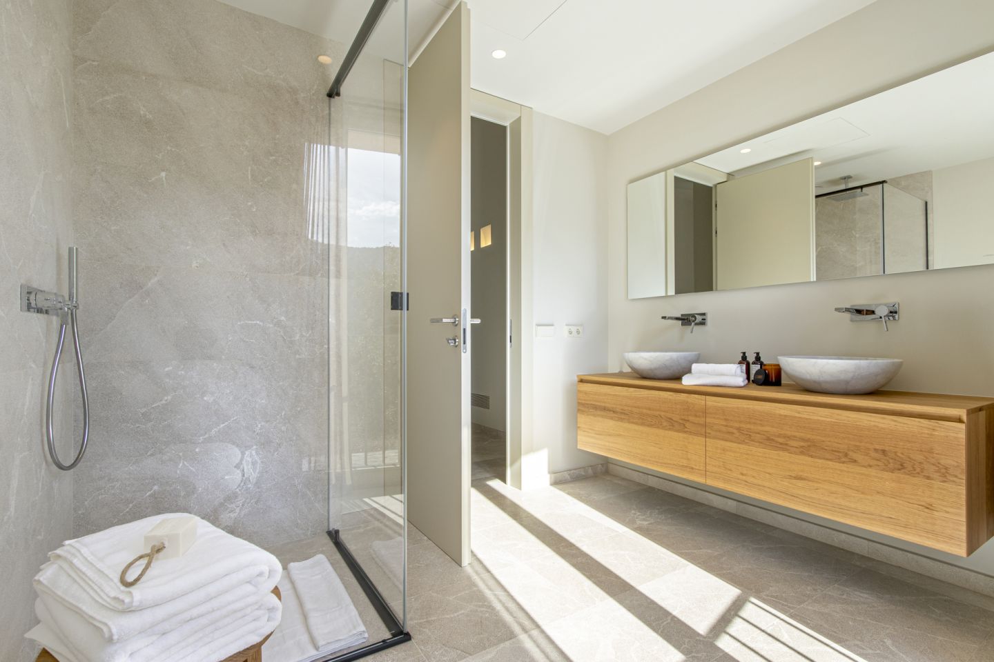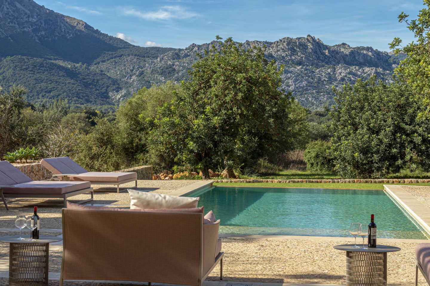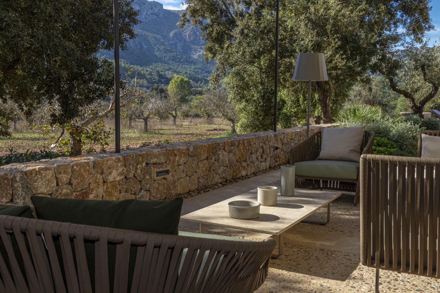 Located in the exclusive Vall de n March, this south facing property has great privacy and amazing views to Puig Tomir. The villa has been constructed to the highest quality standards, with high ceilings, using the best materials and latest technology but adapting the architecture to the environment, and is equipped with furniture from renowned European designers. The ground floor level offers an impressive entrance which leads to a large living-area with fireplace and various sitting areas, dining area, open plan kitchen, cloakroom, utility room and a large bedroom with en suite bathroom and its own terrace. In the first floor: main bedroom with bathroom, walk-in cupboard and two terraces. Another three bedrooms, one of them with its own bathroom and terrace. Outdoors: covered terrace dining area connected to the kitchen, outdoor living-area covered by a beautiful pergola, swimming-pool and a fabulous garden surrounding the house. Features: Underfloor heating and airconditioning with internet access, solar panels, mechanical ventilation system, water well with treatment plant.