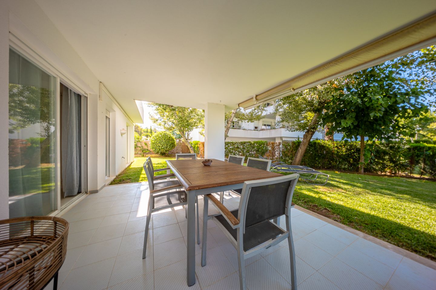 This lovely garden property is situated in one of the most sought-after areas in Bellresguard, known for its peaceful and upscale atmosphere! The spacious 130m² apartment with its private garden and proximity to the Pine Walk and beach is an amazing property with three good-sized bedrooms and two bathrooms, including an en suite. Furthermore the property offers a fully furnished and equipped kitchen and a spacious and bright living - dining room with direct access to the covered terrace of 25 m2 and the private garden of 126m², which is a fantastic feature, perfect for outdoor relaxation. The extensive community landscaped garden areas, sunbathing terraces, and swimming pool, adds great value to the property. Storage room and parking lot.