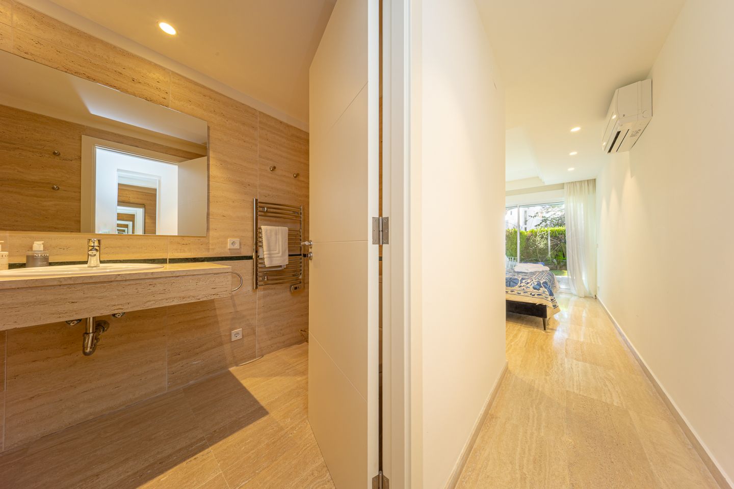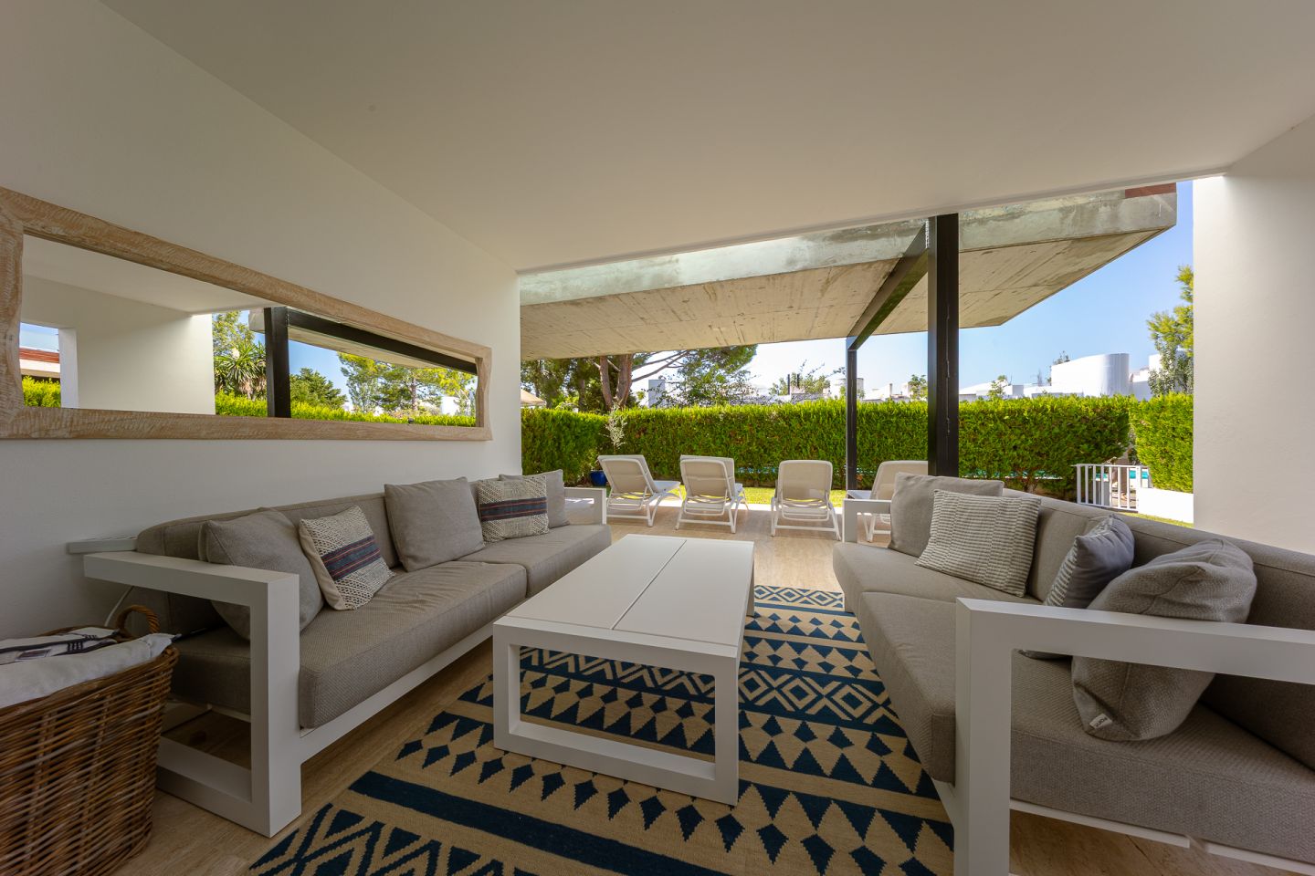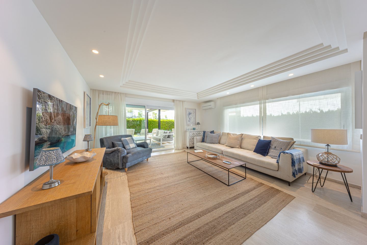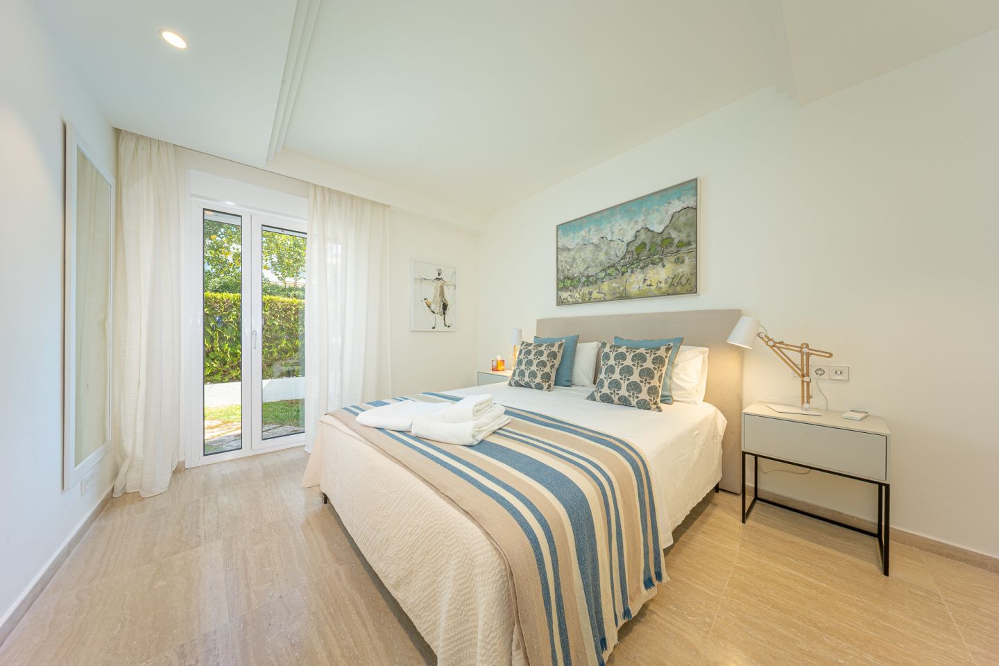 Fantastic ground floor apartment located in the peaceful and exclusive residential area of Bellresguard, just 200 meters from the iconic Pine Walk in Puerto de Pollensa. This impeccable property of 172 m² is distributed into 4 spacious double bedrooms and 3 full bathrooms. It features a large living-dining room, a fully equipped open kitchen, a practical utility room, and a covered terrace of 52 m² with direct access to the private garden of 176 m² that surrounds the property. All areas, including the bedrooms, have direct access to this beautiful garden. The residential complex offers a beautifully landscaped garden, a communal pool, a sunbathing terrace perfect for enjoying the sun, and a covered parking space assigned to each apartment. The apartment has been designed with high-quality materials and modern finishes, and is equipped with air conditioning and heating, ensuring maximum comfort throughout the year.