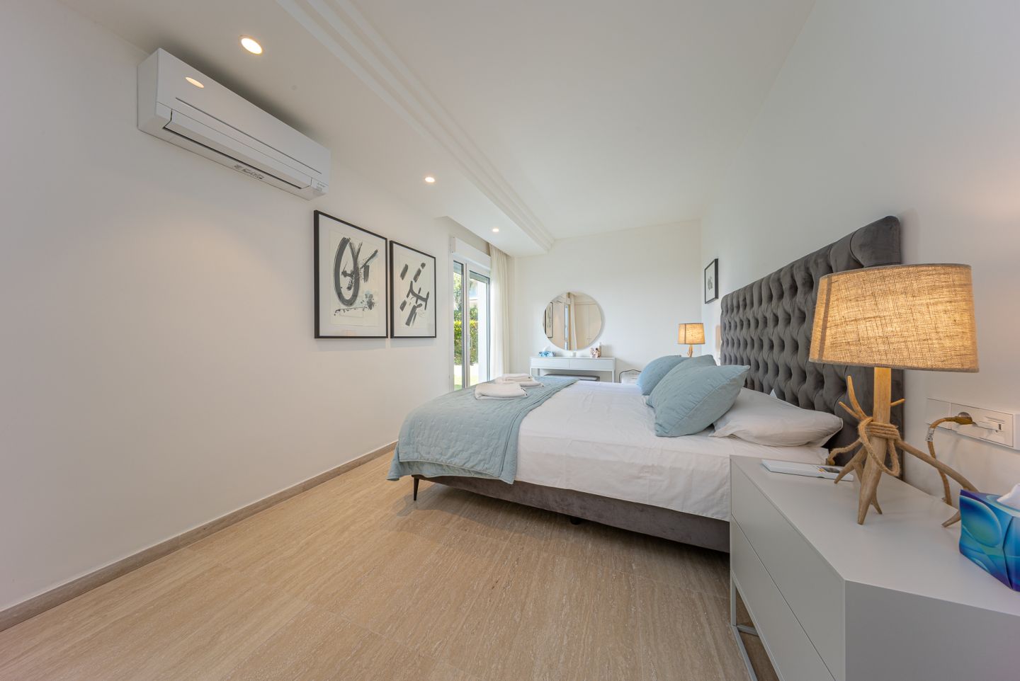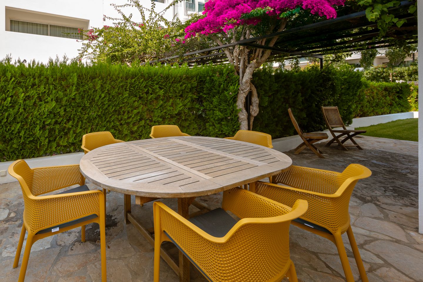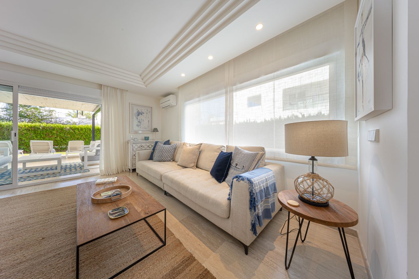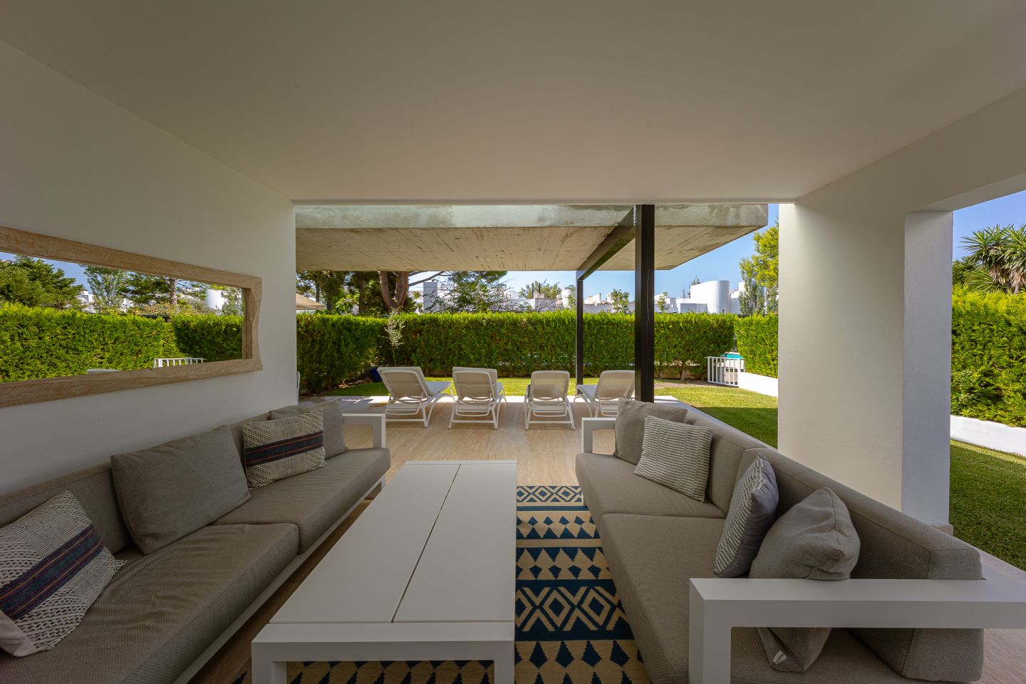 Fantastic ground floor apartment located in the peaceful and exclusive residential area of Bellresguard, just 200 meters from the iconic Pine Walk in Puerto de Pollensa. This impeccable property of 172 m² is distributed into 4 spacious double bedrooms and 3 full bathrooms. It features a large living-dining room, a fully equipped open kitchen, a practical utility room, and a covered terrace of 52 m² with direct access to the private garden of 176 m² that surrounds the property. All areas, including the bedrooms, have direct access to this beautiful garden. The residential complex offers a beautifully landscaped garden, a communal pool, a sunbathing terrace perfect for enjoying the sun, and a covered parking space assigned to each apartment. The apartment has been designed with high-quality materials and modern finishes, and is equipped with air conditioning and heating, ensuring maximum comfort throughout the year.