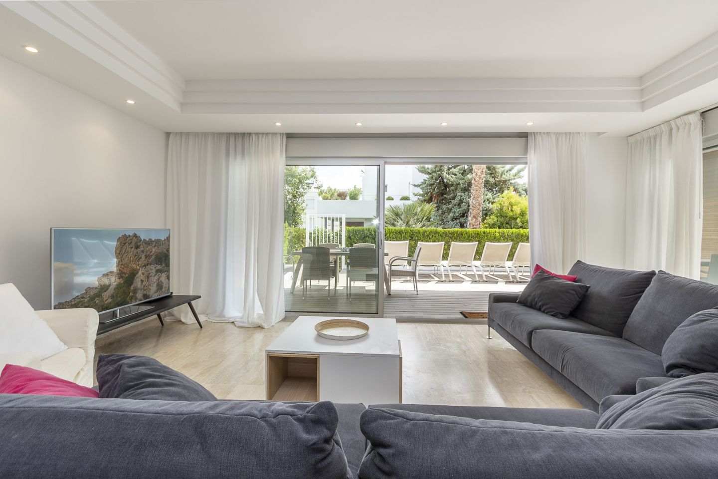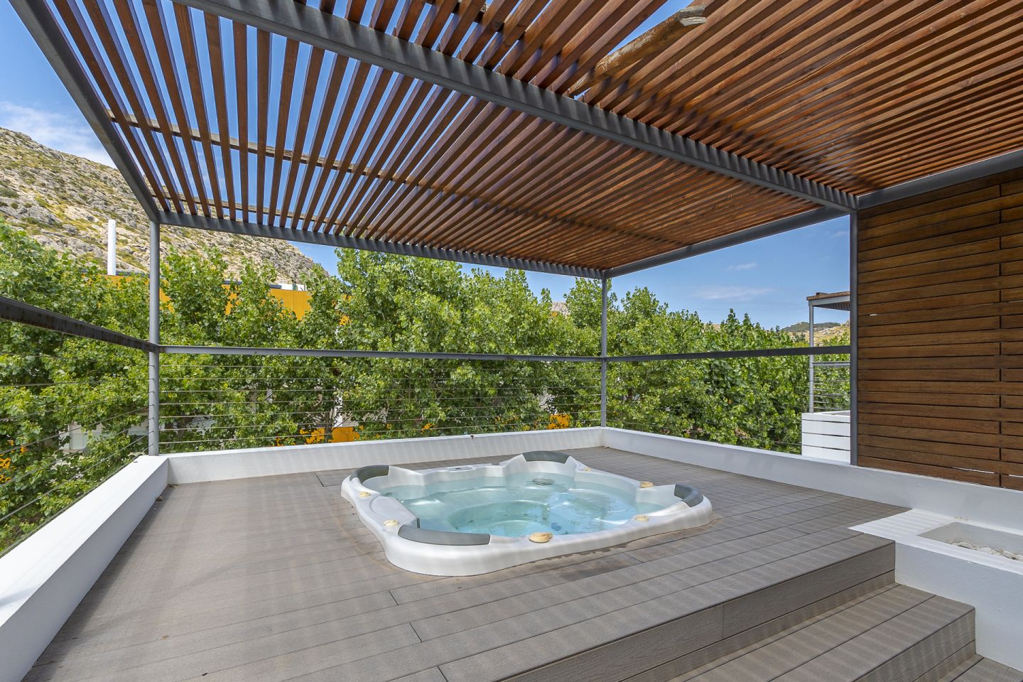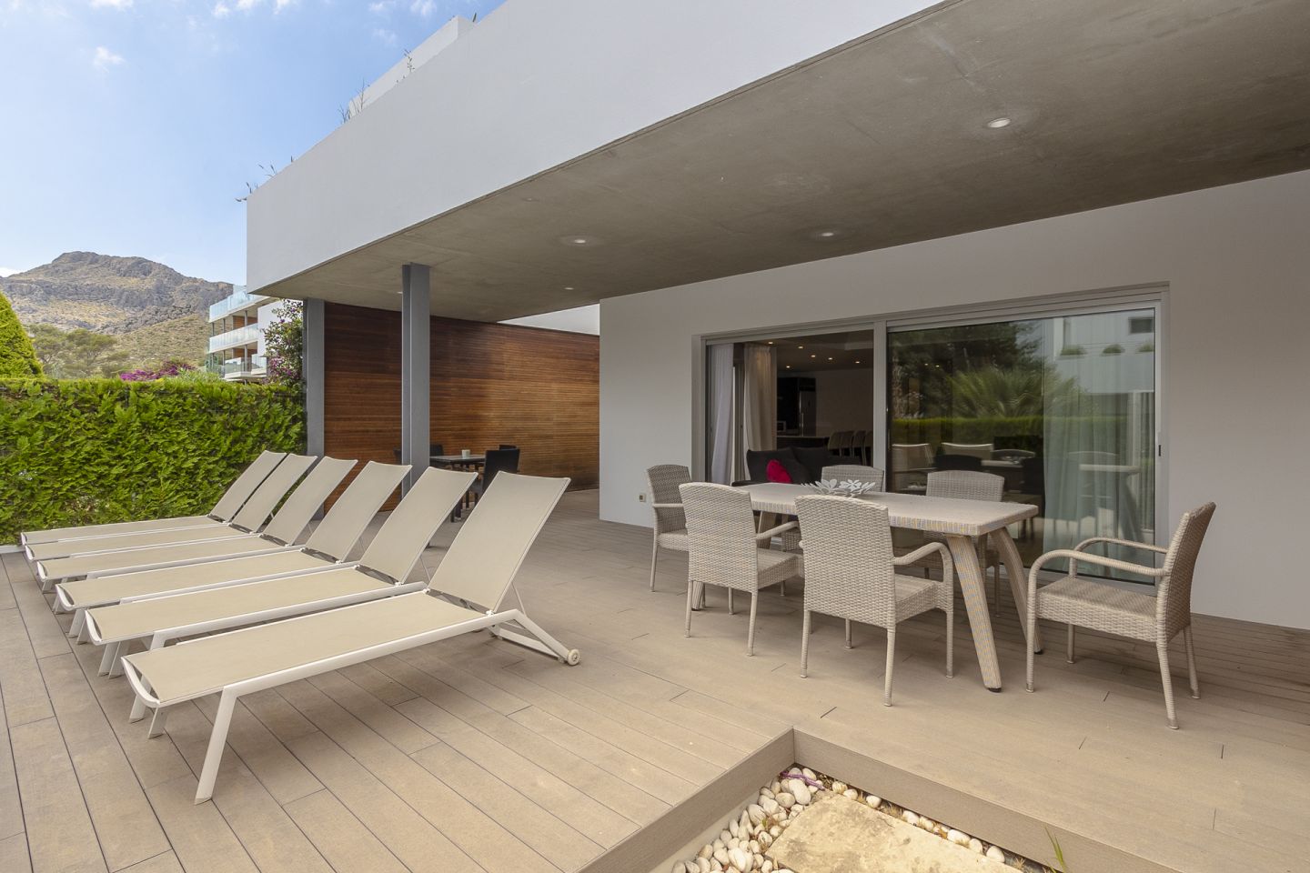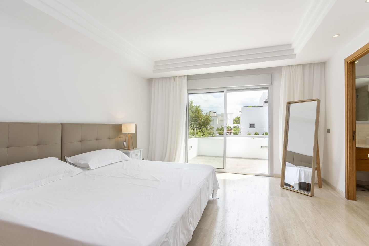 This south facing town house is situated close to the beach and Pine-walk in the residential and gated area of Bellresguard, in Puerto de Pollensa. Private roof terrace with BBQ, jacuzzi and great views.