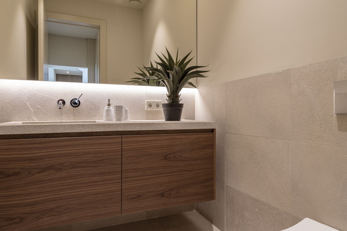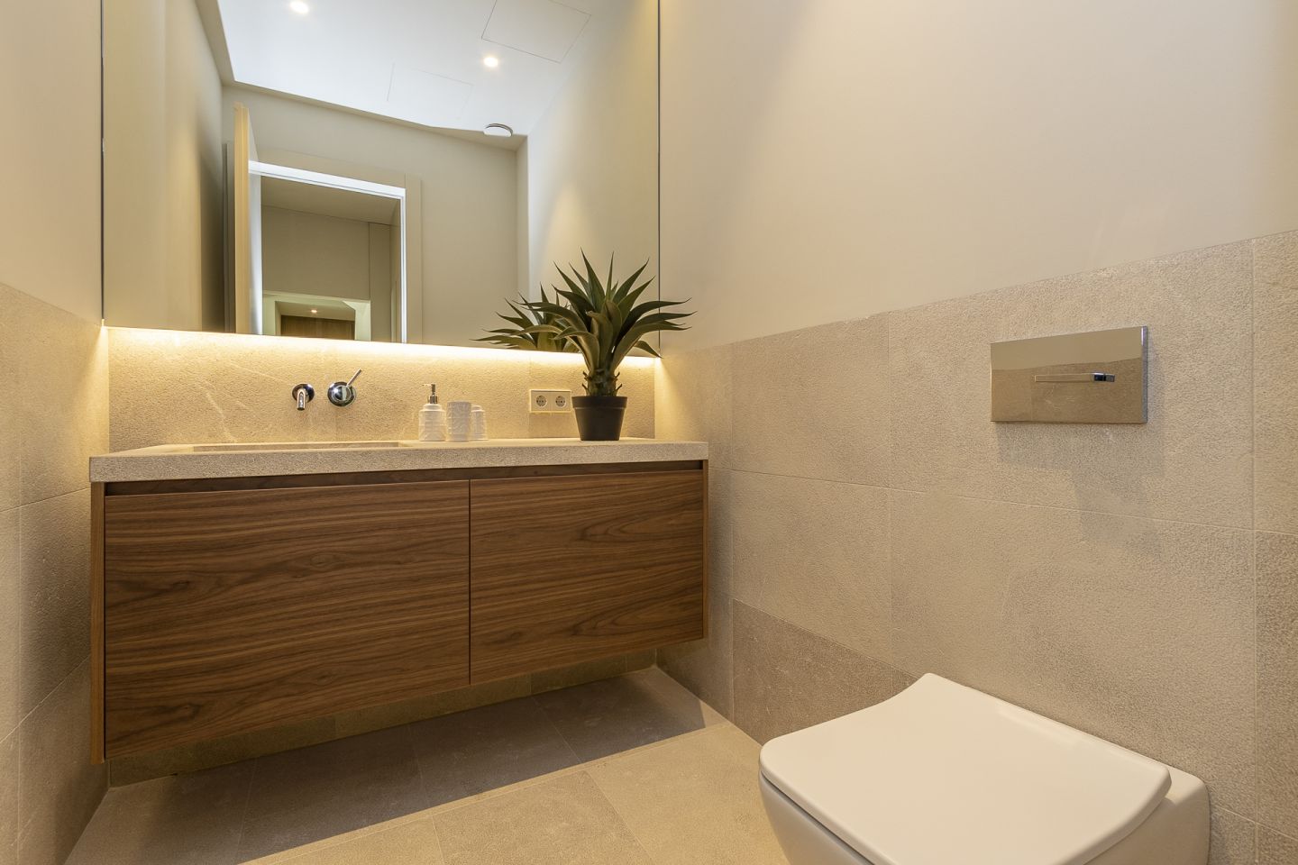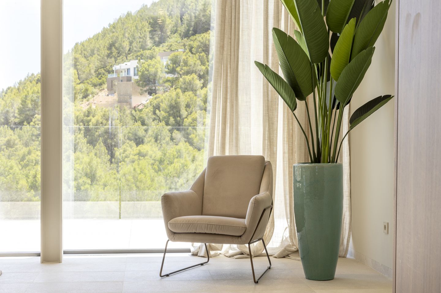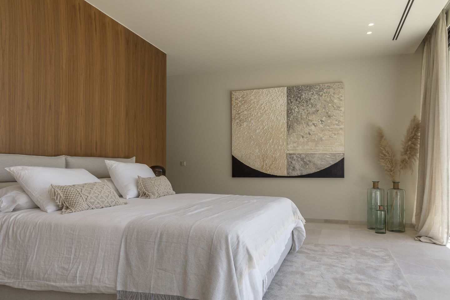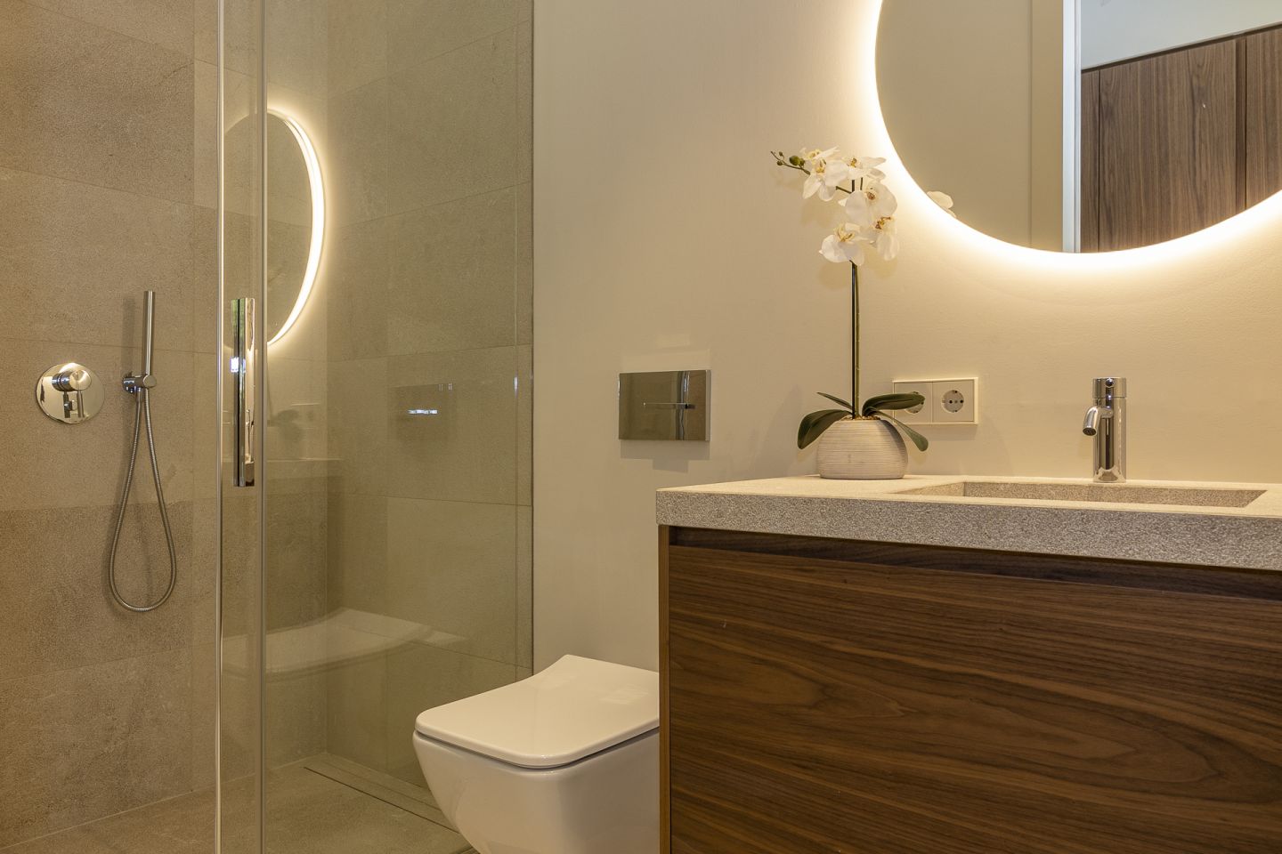This new built villa is situated in the neighbourhood of Son Vida, one of the best locations on the Island of Mallorca, close to the town of Palma. The magnificent villa of 551 m2 is situated in a plot of 1118m2 and has four bedrooms and five bathrooms. The property impresses with the best materials to be found on the market, generous spaces, high ceilings, in a modern and contemporary design. The lower floor consists of open plan kitchen with cooking island and Gaggenau appliances, the living room with gas fireplace, the pool terrace with views of Palma, and a guest toilet and a guest bedroom with an en suite bathroom. On the first floor level is the spacious master suite with a dressing area, en suite bathroom and a large balcony. Adjacent to this are two further bedrooms, both with en suite bathrooms, as well as an additional terrace with a sauna. A fantastic roof terrace invites you to relax or entertain enjoying the many hours of mallorcan sunshine. The basement offers a garage with space for two cars, a multifunctional room that can be used as a gym or home cinema, a bathroom and plenty of storage space. The property features also include: an elevator, irrigation system, garden, underfloor heating via air heat pump, air conditioning.