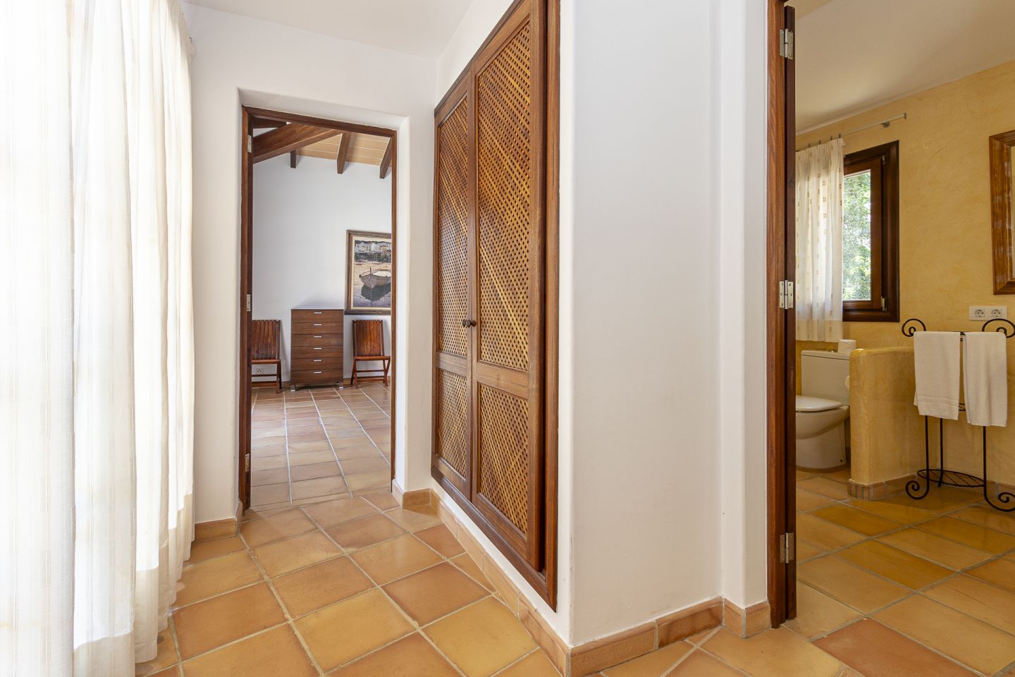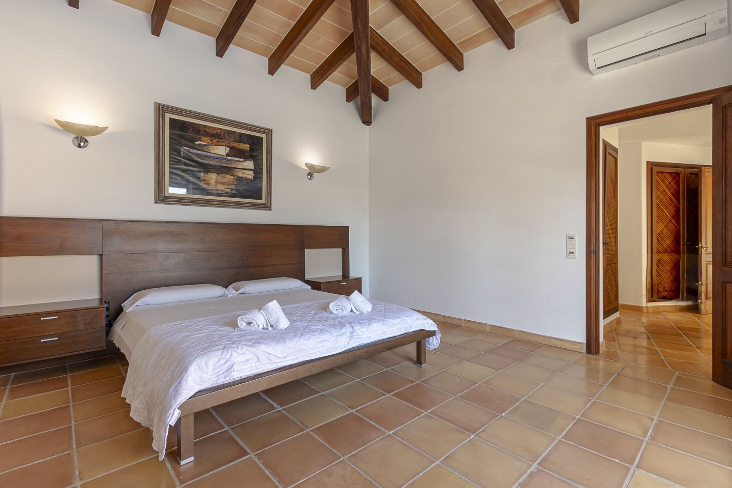This Villa is located in a prestigious residential area of Gotmar in Pto Pollensa , and enjoys beautiful mountain views, a spacious and private outdoor area, within walking distance to the beach and town centre. This one-storey property of 272 m2 is designed with full ceiling height and generous spaces in all areas and consists of four bedrooms, three of them with en-suite bathrooms, a living dining – dining room with plenty of natural light coming through three double doors leading to the covered and uncovered terrace area, fully equipped and recently refurbished kitchen with access to a utility combined storage room with exterior entrance, separate entrance hallway and guest bathroom. The property enjoy a pool area and sunbathing terrace in a private area of the garden, fruit trees, and driveway with parking area for several cars. Underfloor heating, air conditioning, and an open fireplace next to the living area. The Villa has a rental licence and has proved to be very popular on the rental market.